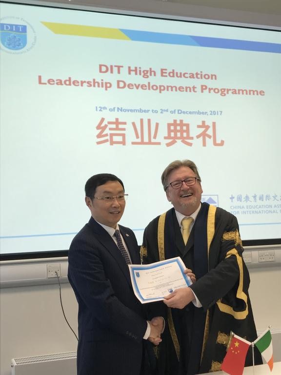 11月12日—12月2日,校长何延政参加了由中国教育部、李兆金基金会、培华教育基金会、爱尔兰贸易与科技局和爱尔兰教育推广署联合主办的“千名中西部大学校长海外研修计划”赴爱尔兰开展了为期三周的交流学习。此次代表团成名由来自我国10个省区、19所高校的校长组成,该次访问是中爱两国建交以来第一次教育方面最高规格的交流学习。