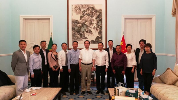 拜访结束后,何延政代表学校向蔡润大使和使馆相关领导赠送了附属中医医院研发的香囊及中英文宣传资料。附属中医医院党委副书记杨文信、中葡中心常务副主任王琼博士参加了拜访。