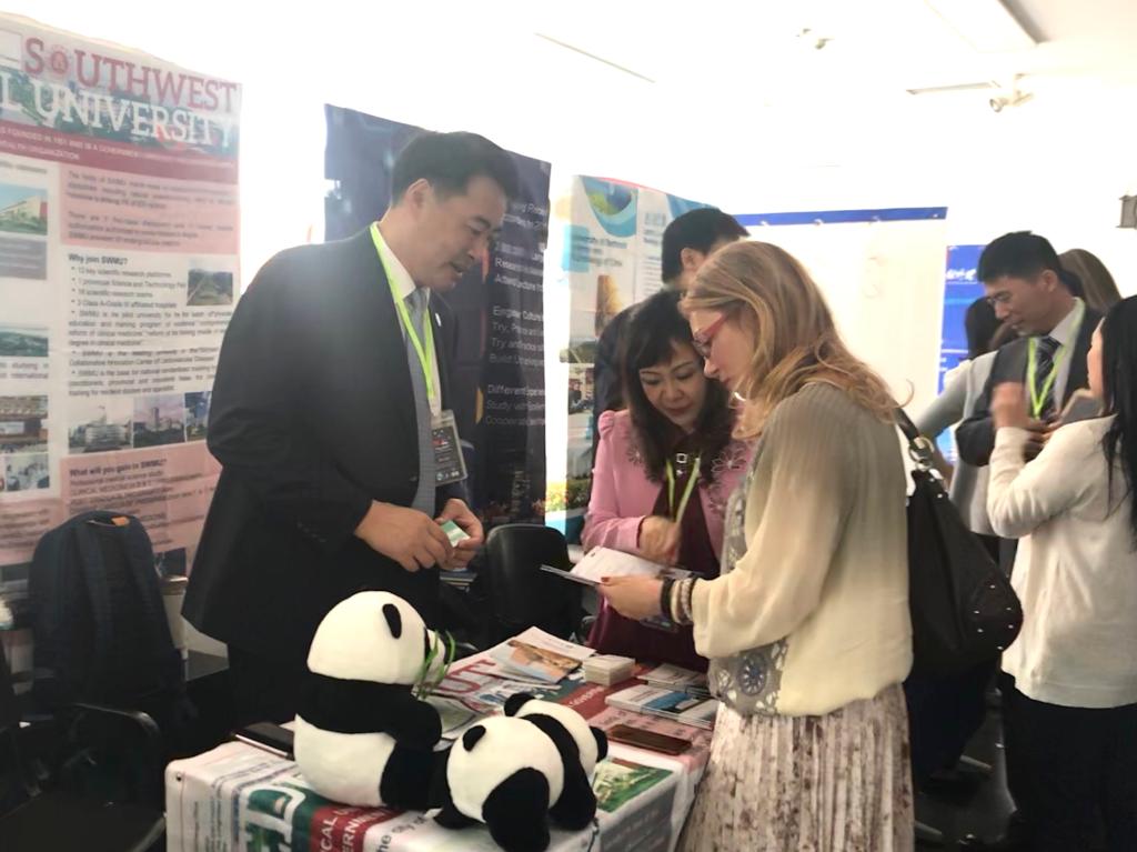 10月13日至14日,我校及全国参展高校与来自美国、德国和法国等国的教育机构一同参加了分别在莫斯科和圣彼得堡举行的第32届俄罗斯国际教育展。参加本次展会的高校类型不同,学科层次多样。各高校在中心会场举行了相关学校宣讲会,为有意咨询者提供更为直观、深入的了解渠道。我校代表团在展会期间向前来咨询的学生详细地介绍了学校的学科特色、招生录取政策、奖学金情况和留学生短期汉语和中医等项目,并结合每个咨询学生的实际情况推荐适合的留学项目。