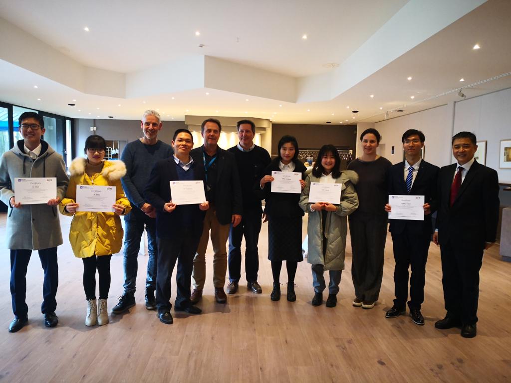 在15天的交流学习中,学习交流团与比利时学生一起学习,体验了安特卫普大学医学院PT(物理治疗)专业本科和硕士研究生阶段课程,包括肌骨康复、疼痛康复、神经康复、老年心肺康复及运动康复等,了解了比利时康复医学PT专业的课程设置和培养体系,同时参访了该大学医院(UZA)康复医学科。在最后课程的结业仪式中,我校师生代表用英语展示了这半个月的游学感悟,并由安特卫普大学医学院院长Guy Hubens教授授予结业证书。