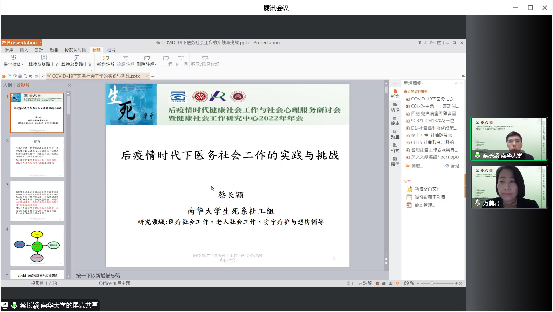晚上19:00-21:00“健康社会工作与社会心理服务”征文分论坛,由beats365唯一官网入口官网心理学专业宋丽娟老师主持,公共管理和应用心理相关专业的研究生、本科生踊跃参与,最终选取10篇优秀论文在分论坛跟专家、老师和同学们进行汇报分享。